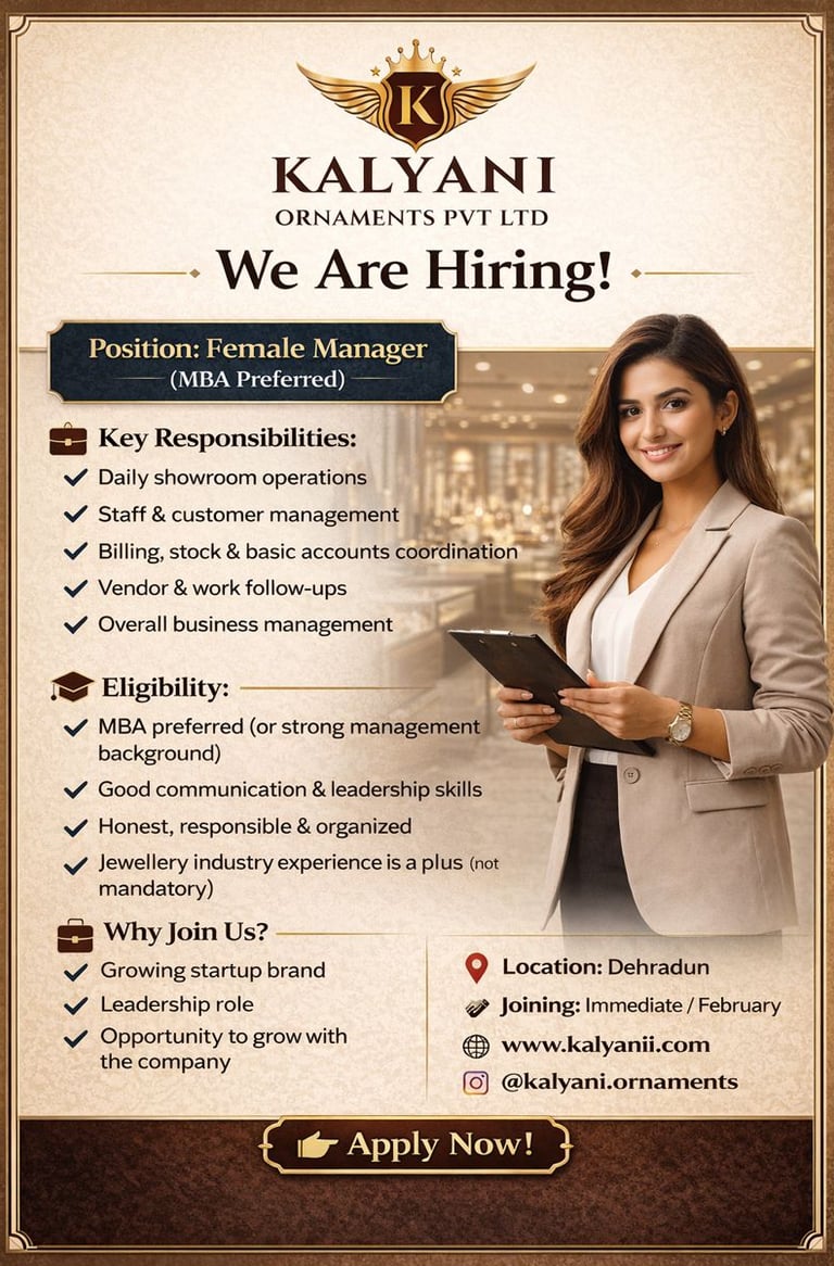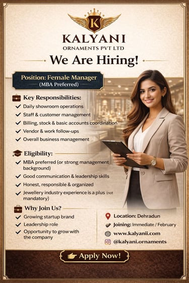 Kalyani Ornaments Pvt Ltd is a fast-growing jewellery startup.